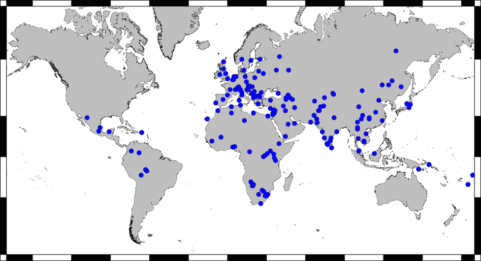 Parabon has built a powerful system for determining ethnic ancestry from DNA. Most other forensic ancestry systems use only a small number of SNPs and thus are limited to very coarse populations and cannot detect admixture between populations. Snapshot uses tens of thousands of SNPs across the genome to obtain very precise estimates of ancestry, even for admixed individuals. Parabon's scientists have collected data from many published scientific articles, totalling more than 9,000 individuals with clearly defined ancestry from more than 150 populations around the world, as shown in the map below.